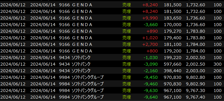 デイトレは半導体で手掛けたのがSBG、ソシオ、アドテストと「寄り付き以降冴えない組」だったためパフォーマンスは今一つ。最近はディスコが高くなりすぎて強いと気づいていてもなかなか入れないのが難しいところです。売買代金を考えるとローツェもしかり。伊勢化の流れに乗ったショートだけがスマッシュヒットになりました。