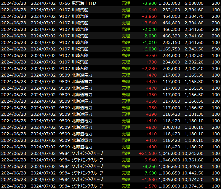 デイトレは前場収支+8万。後場半ばにはあわや収支マイ転、という状況に直面してあきらめ、39600を割れたところでポジション完済(▲5万)。39500どころでさらに下げる感じがなかったので14:30でもう一度ポジションとって引け返済(+3万)。