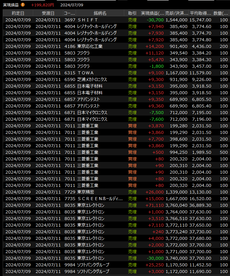 デイトレですが朝は半導体の買いと重工の売りで入り、重工は即逃げ。今日も日本マイクロと唯一半導体絡まないSHIFTで痛い目にあいましたが、それ以外は選定銘柄も概ね良好。今日は順調でした。