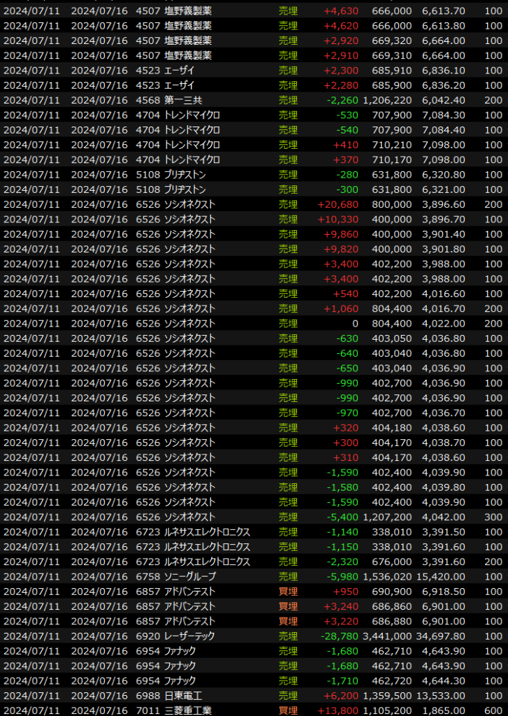 デイトレは朝ショート、早々に転換して前場後半からは医薬、建設、陸運など、途中からソシオレーザーなど半導体も交えてロング。2周くらいやって、後場後半の日経レバショート、ソシオロングのロングショートはまた裂き気味でした。