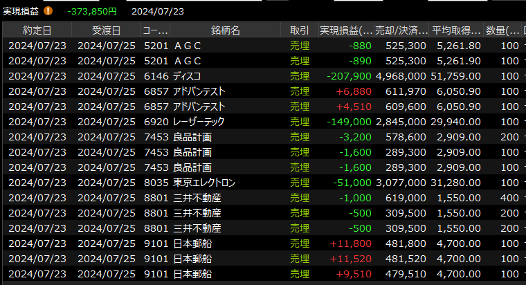 7/24(水)後場崩壊、今週ひどすぎ 2024.07.24