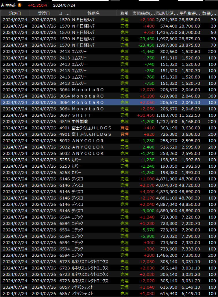 7/24(水)後場崩壊、今週ひどすぎ