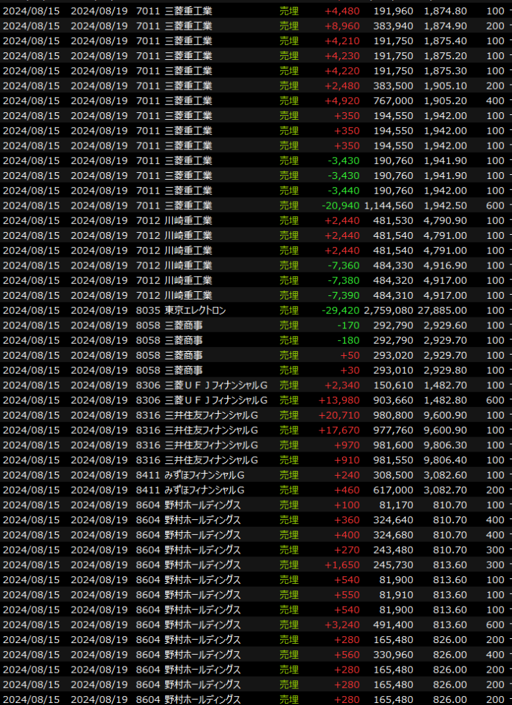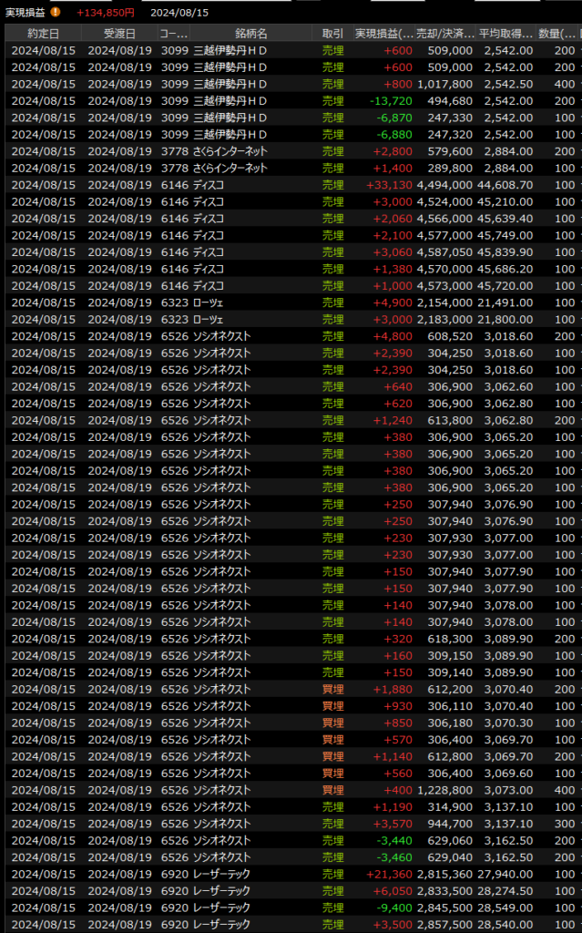 デイトレは調子に乗りました。後場寄り時点で25万ほどの利確を終えていたのでもう5万取りにいって10万以上回収されました。今日はいけそうな感じがしたのですが、調子こくとだいたいこういうことになりますね。自業自得。