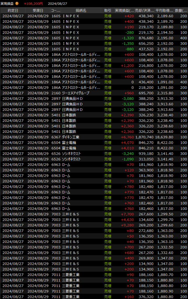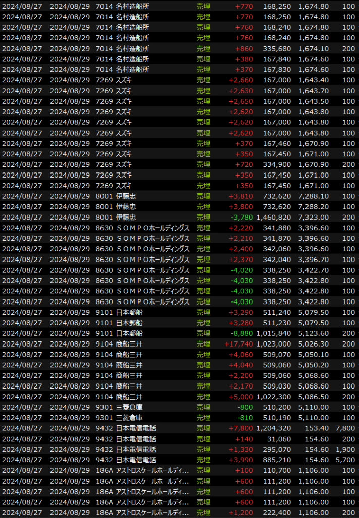 デイトレは寄り直後からレーザーテックとディスコが売り込まれているのをみて戦場を「半導体以外」においたため無難な取引結果になりました。後場指数が伸びたところでまったく収益を伸ばせなかったのは残念でしたが朝の海運などうまく立ち回れたところもあったので良かったです。