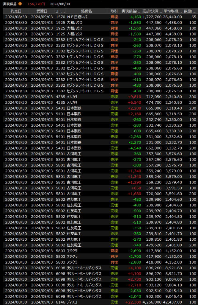 8/29(木)半導体のショートで撃沈 2024.08.29