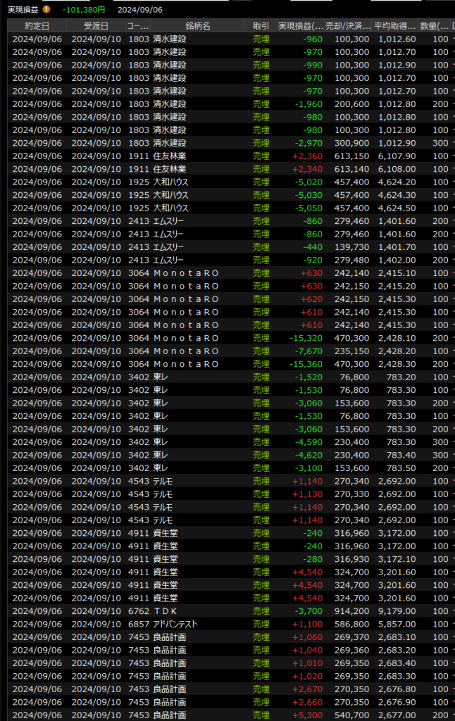 デイトレは11時まで+12万ほどでしたが、そこからファストリはじめあらゆる銘柄が崩れてもうなすすべなし。少なくとも下げ局面では場中ずっとしっかりとポジションを持つ今のトレードのやり方を変えないとだめだなぁ、と強く感じた一日でした。