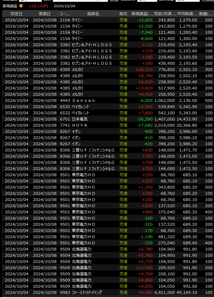 デイトレは新興系、電力、小売を中心にやってメルカリ、北電が収益を支えてくれましたが、NEC、タイミーなどやらかしトレードもあって微妙な一日でした。