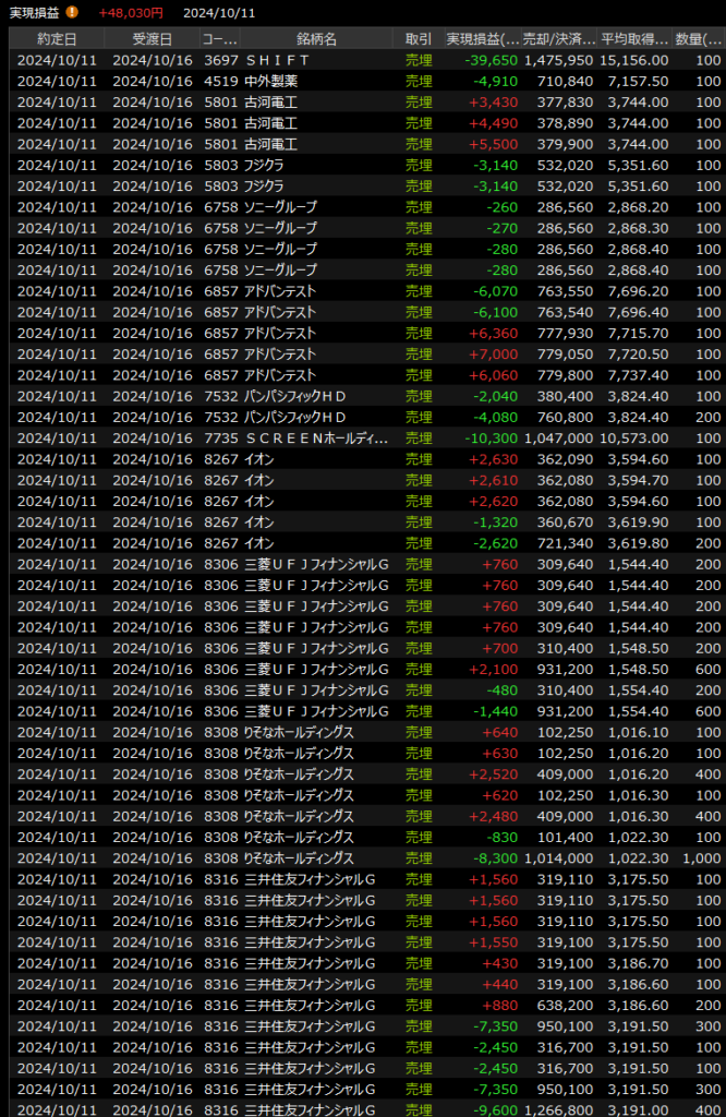 デイトレは寄り直後ファストリを薄利で、SHIFTをロスカットしてしまったのは悔やまれますが、ファストリはその後もう一度参入したのでなんとか収支をつくれました。後場寄り直後にファストリだけ返済して他の銘柄に移りましたが、圧倒的にここを握り続けるのが正解でした。しかし銀行が伸び悩んだなぁ。