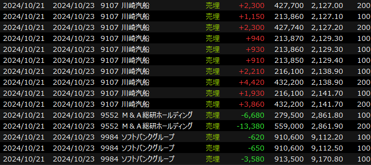 10/22(火)9連続小陰線後の大陰線 2024.10.22