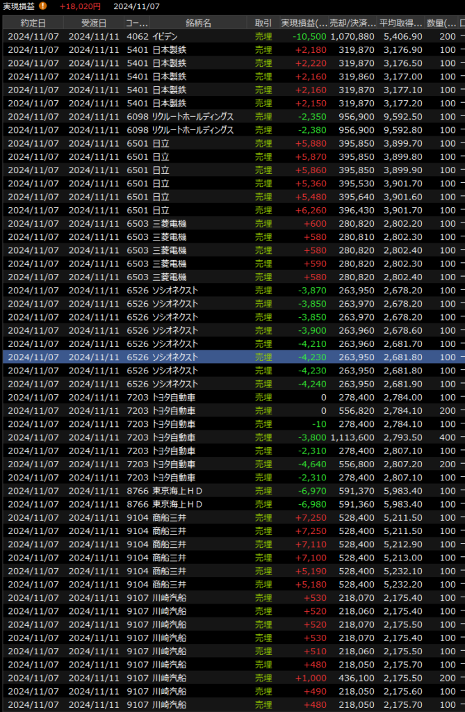 デイトレは半導体はソシオのみ、他に海運や日立、日本製鉄などいいところをやっていたのですが、いかんせんこの指数推移の中で一時大敗の危機。14:30前に収支プラス圏まで戻ったところでごめんなさいしました。今日はもうプラスなだけ御の字です。