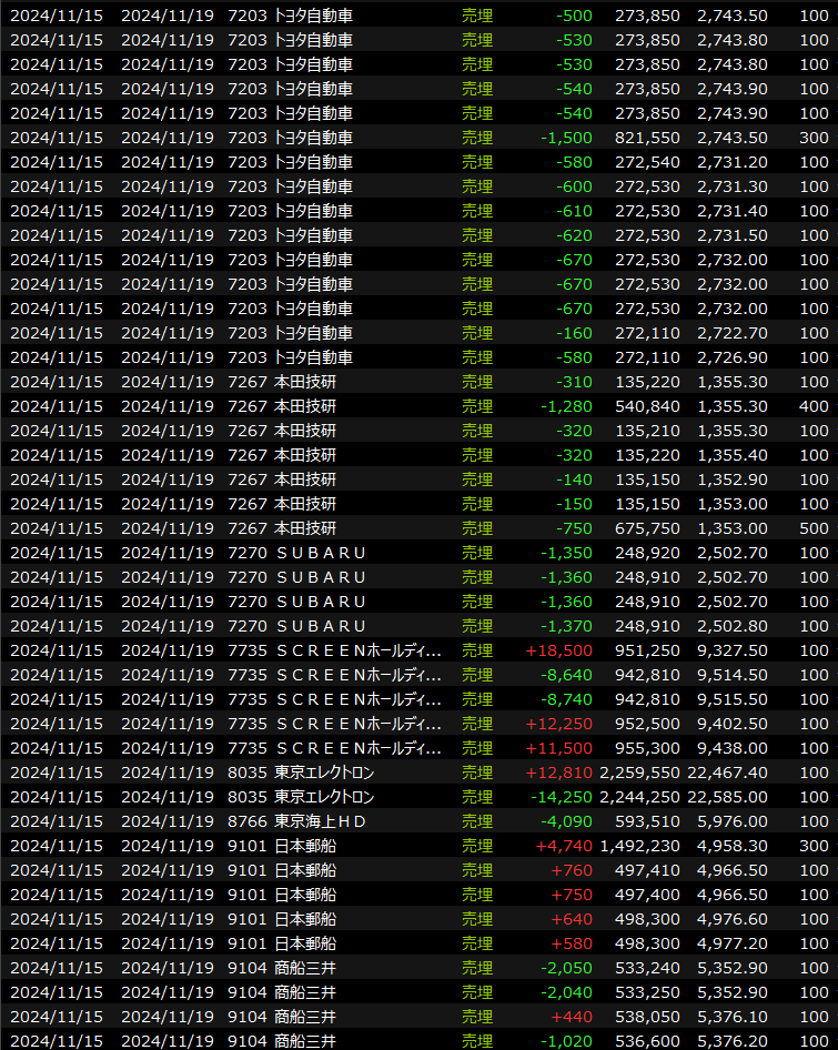11/18(月)下値堅くも上値重い 2024.11.18