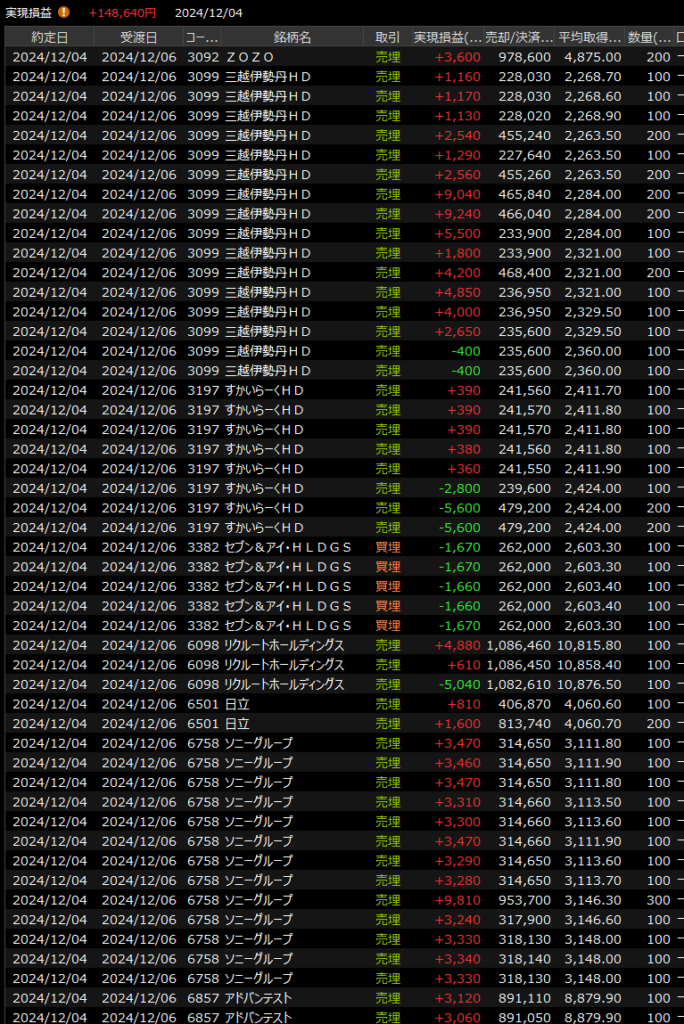 デイトレは大きく3周りほど。朝やった東エレクやアドテストはダメでしたが、重工系、ファストリ、ソニーなどで少しずつ取れたことでしっかりした一日になりました。やっぱりダメと思った銘柄を利確と一緒にバサッと切れると収支がまとまります。