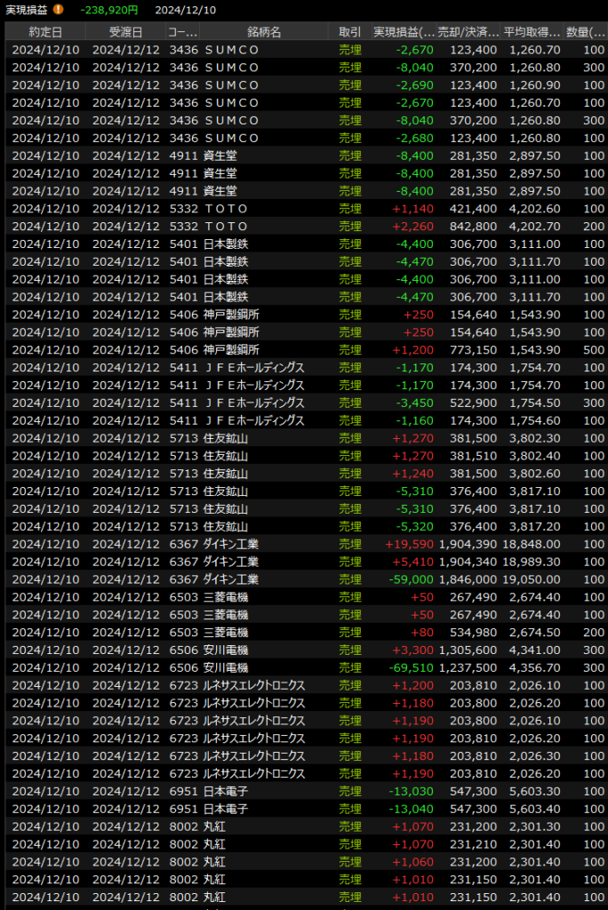 デイトレは朝の中国関連高の高値を見事に掴みまくって爆死。安川、ダイキン、資生堂など酷いものでした。もう絶望しかありませんが、いい加減わかってきたものもあるので、今後はしっかりやっていきたいです。