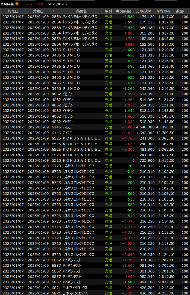 デイトレは後場伸び悩みましたが、それでも半導体セクターでしっかり固めたので収益もついてきました。