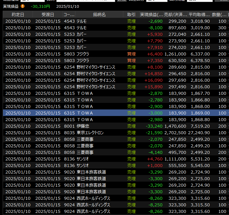デイトレは野村マイクロやカバーなども少しやりましたが、東エレクやほかの個別でやられて今日もマイナスでした。今週は2勝3敗でしたが負けの金額が抑えられたため、週を通してはプラスを維持できたのが良かったです。