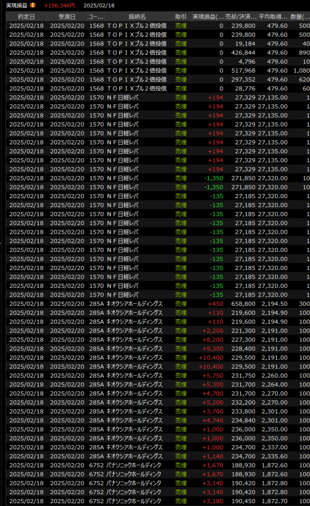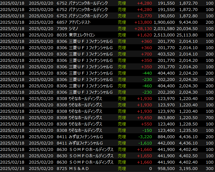 デイトレは13時まで好調。その後収益はだいぶ削られましたが、比較的金融株に寄せてたこともあって被害は最小限にとどめられました。