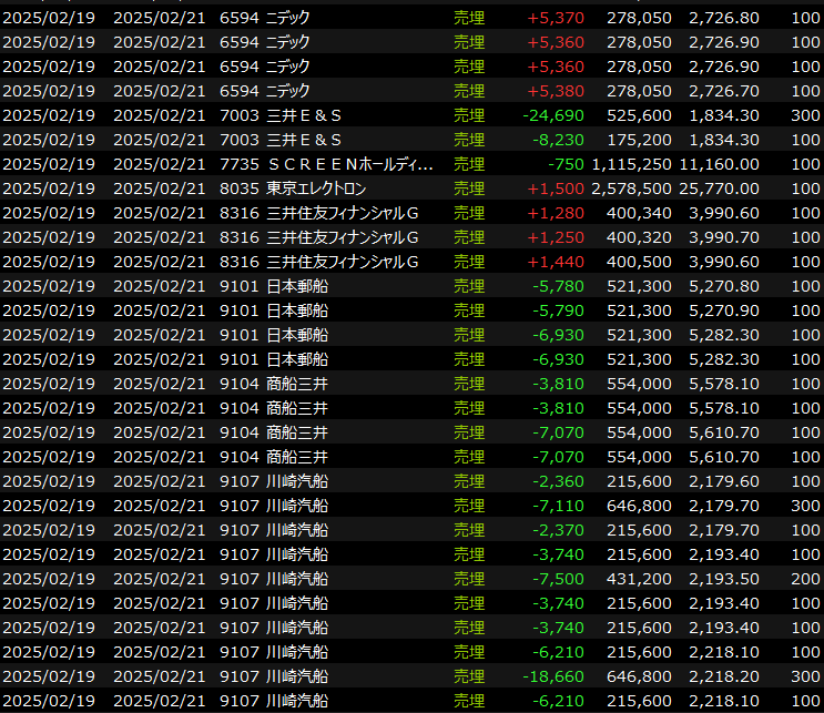 デイトレはやっと海運デイが来た!と気合を入れて参戦しましたが、空振り。いくらかでも朝利確をしていれば良かったのですが、逆にポジションを積み増したことで目も当てられない状況に追い込まれました。最近は商社海運がどうもだめな印象です。