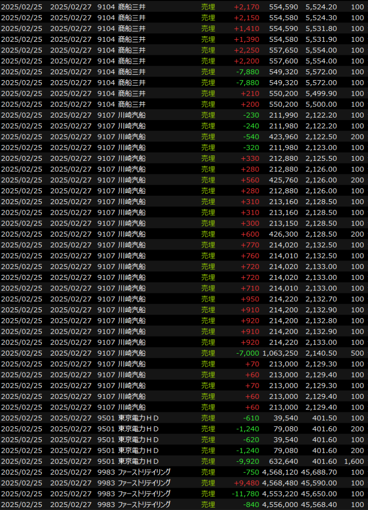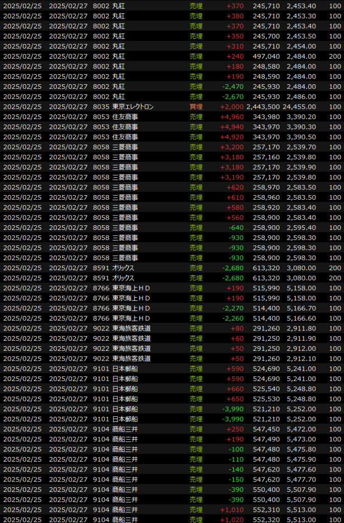 デイトレは寄り直後は商社を中心に稼ぎ、途中から海運、ファストリなどに逃げて利益を削りました。朝急速に下げ幅縮めた半導体に誘われず最後まで触れなかったのは良かったです。
