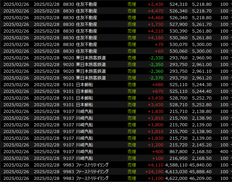 デイトレはメルカリと花王で失敗しましたがここを後場イチで切ってファストリ、不動産、海運あたりを中心に何とか持ちこたえてプラス着地できました。