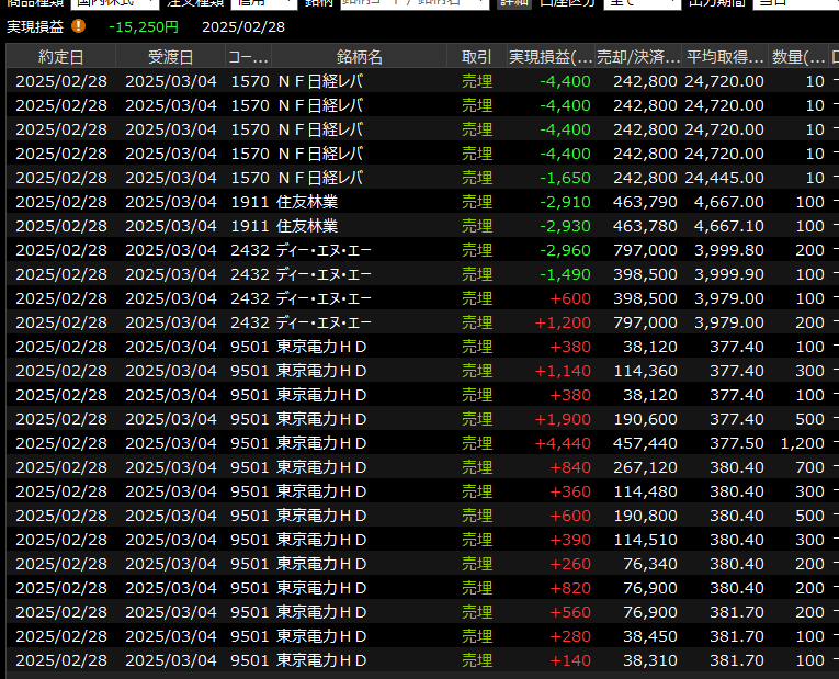 デイトレはひとまず半導体を触らず、材料出たDENAとほかも底堅そうだった数銘柄だけ。今日はマイナス3σという特殊事情により、少し含み損ですが2銘柄持ちこします(半導体はなし)。
