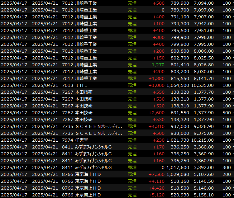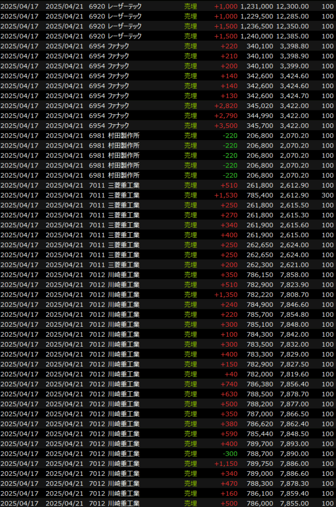 デイトレは防衛関連やら半導体やらいろんなところに出たり入ったりしましたが、とにかく細かくヒットアンドアウェイを繰り返したので大きな動きは取れませんでした。でもこれでいいです。