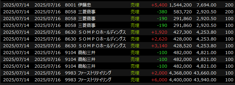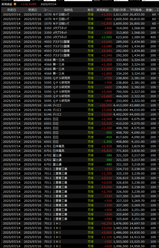 そんな良品計画にも入れず、防衛もほとんどやらないチキンな取引ながら今日のデイトレは細かく利確を重ねてなんとか二けたに乗せました。