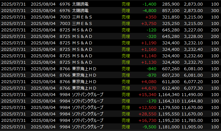 デイトレはOLCや第一三共の決算プレイで軽くやられましたがディスコ、SBG、日本マイクロなど半導体で取れました。最終日に7/22時点の月次▲66万からでなんとかプラテン!!