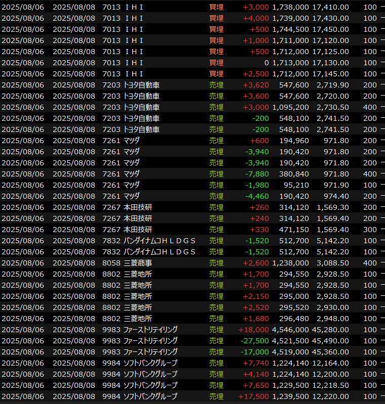 デイトレはファストリで今日もやられましたが、SBGやダイキンなどいろいろ戦って8月初勝利。そら4日も入れば1日くらい勝てますわ。機嫌直して明日からがんばります。