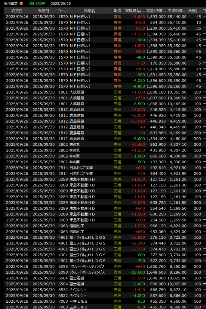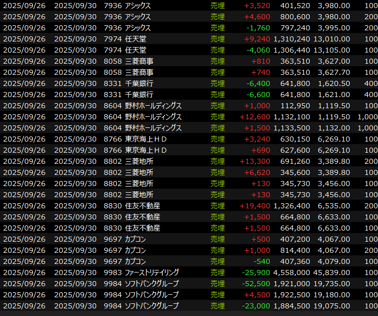 9/29(月)権利落ち分ごっそり下げ 2025.09.29
