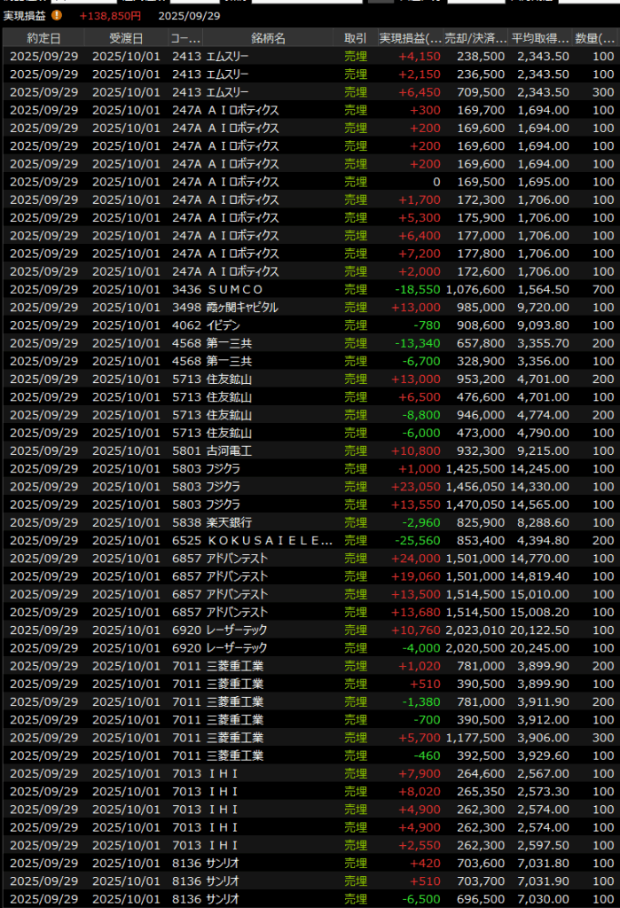 デイトレは久しぶりに少し攻めて、途中から半導体の上値重いのを捨てて防衛関連にも回れたことで手堅くとれました。