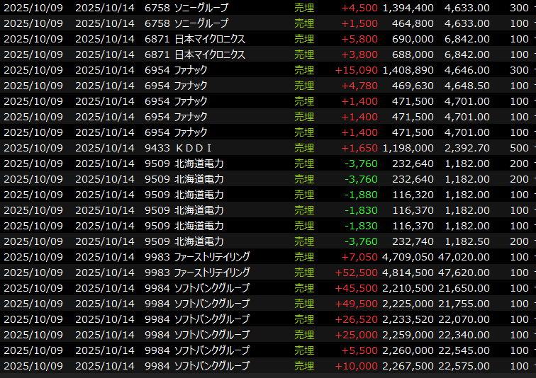 デイトレはSBGを早い段階で手放してしまいそれ以降触れず。後半はディスコや他の中型半導体関連、ファストリなどで回して勝利。負けも多かったですが今日は比較的選択銘柄良かったです。