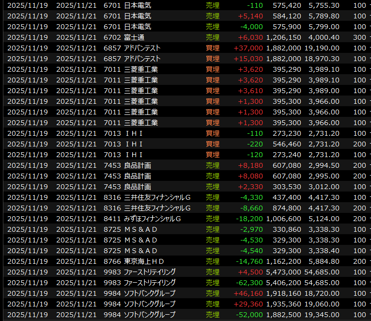 11/20(木)後場寄り30分間の絶望 2025.11.20