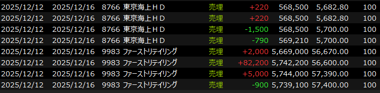 デイトレはいろいろ触りつつ、徐々にファストリとファナック・安川などフィジカルAI、金融、自動車あたりに集めて15時にポジション完済してなんとか連敗脱出。ほっと一息の週末です。