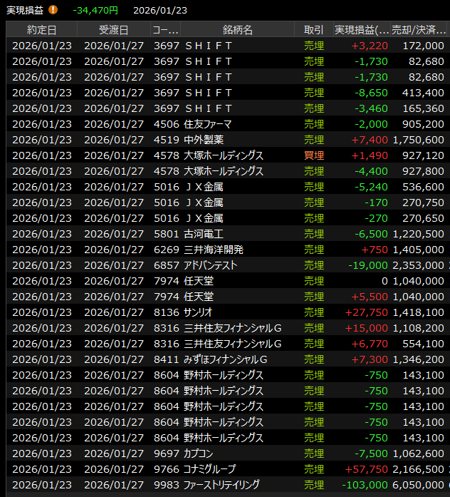 お疲れさまです。久しぶりに任天堂・サンリオなどエンタメ系にきかけた資金でしたが、前場途中からアドテストが史上最高値に向かって走り始めそれをみて半導体が下げ渋るという展開、これに邪魔されて午前中エンタメに向かった資金が逃げてしまいました。