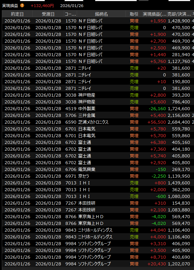 デイトレは指数の上値の重さを読んでSBG、芝浦、富士通などのショートである程度とり(14時過ぎポジション解消)、その後もニトリ神戸物産などのドテンロングが買い場悪かったですが負けはせず、といい一日でした。