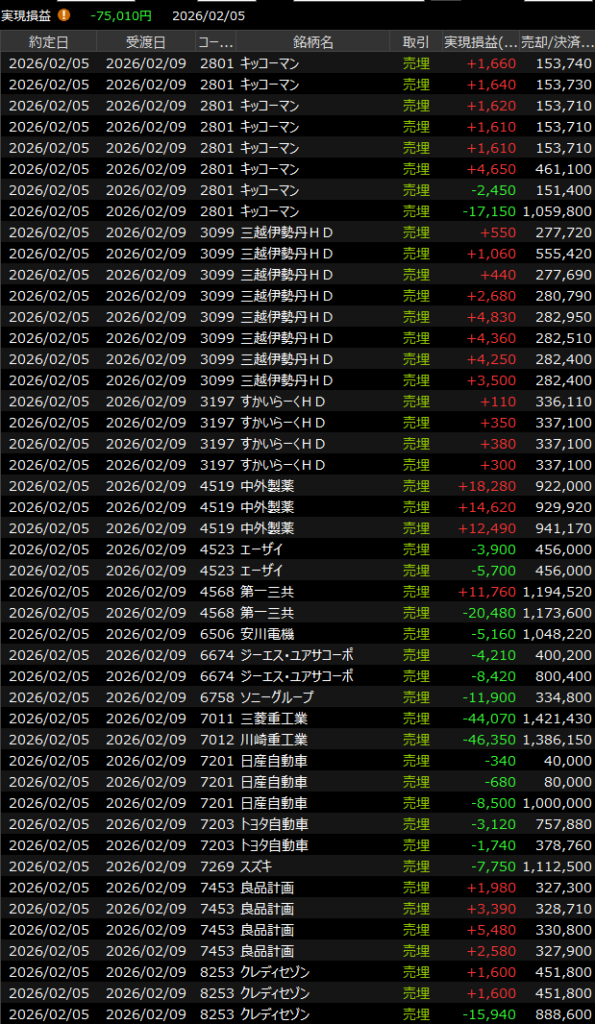 デイトレはファストリ・イオンなど小売りや保険、医薬あたりを中心に前場途中までいい感じかなと思ったのですが、後場に入って指数が下に突き抜ける中でしっかり収支がマイ転しました。月曜に続いてなかなかのトラップデイでした。